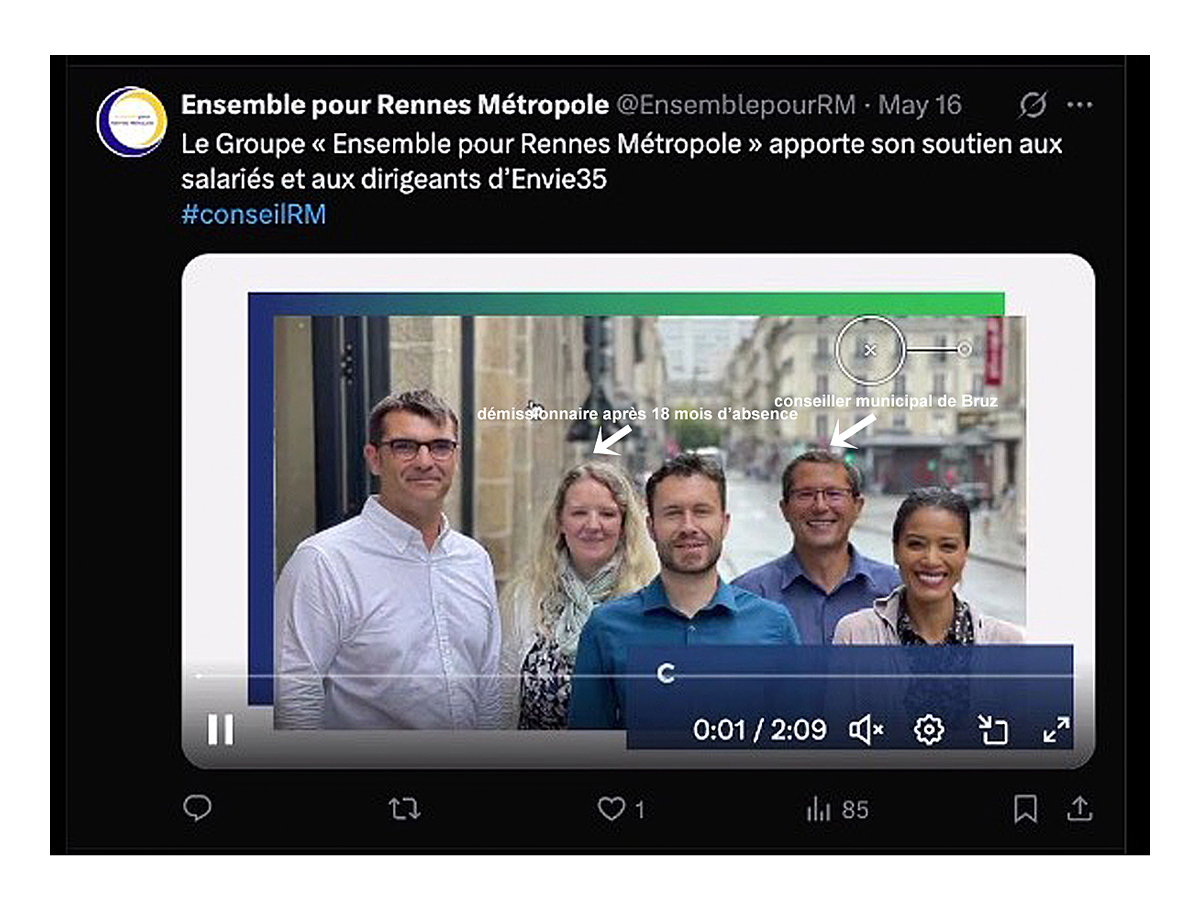Vous vous souvenez certainement que ces deux groupes se sont associés en juin 2024 pour ne plus constituer qu’un seul groupe : « Ensemble pour Rennes Métropole » au niveau de la Métropole.