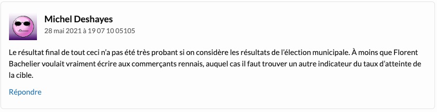 Je me souviens aussi que le média « Rennes Infos Autrement » du 20 juin 2022 avait rapporté ses propos dans les termes suivants :